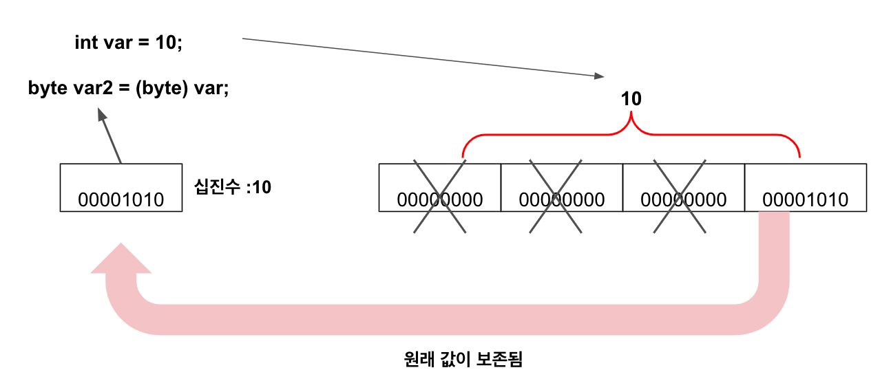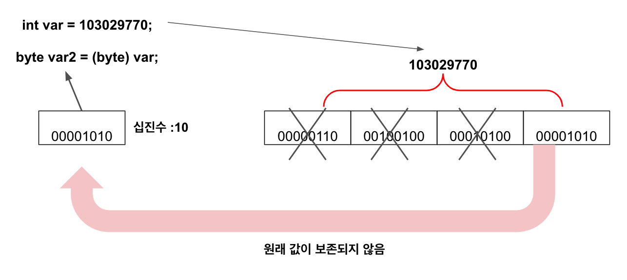 double result = var + (int)var2; // var2의 double 타입이 int 타입으로 변환