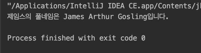 System.out.println("제임스의 풀네임은 James Arthur Gosling입니다.");