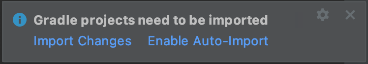 코드 수정이 끝났으면 인텔리제이 하단에 Import Changes 버튼을 클릭하여 변경된 그레이들의 내용을 반영합니다.