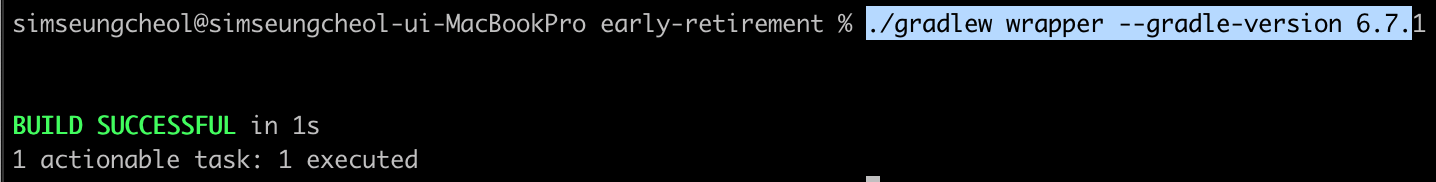 이럴 때는 해당 프로젝트의 루트디렉토리로 가셔서 ./gradlew wrapper --gradle-version 6.7.1 을 입력하여 Gradle 버전을 업그레이드합니다.