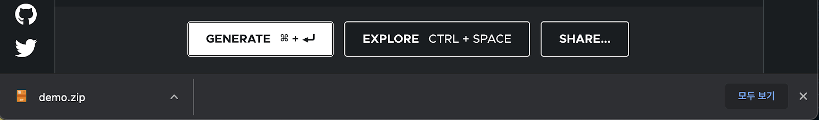 GENERATE 버튼을 클릭하면, 스프링 부트 프로젝트가 zip 파일 형태 다운로드 됩니다. zip 파일의 압축을 풀어줍니다.