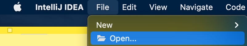 인텔리제이로 이동해서, File - Open을 클릭합니다.