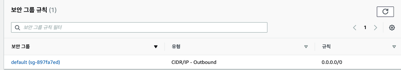 밑으로 내려가면 보안 그룹 규칙을 볼 수 있습니다. 파란 글씨의 보안 그룹을 클릭해주세요.