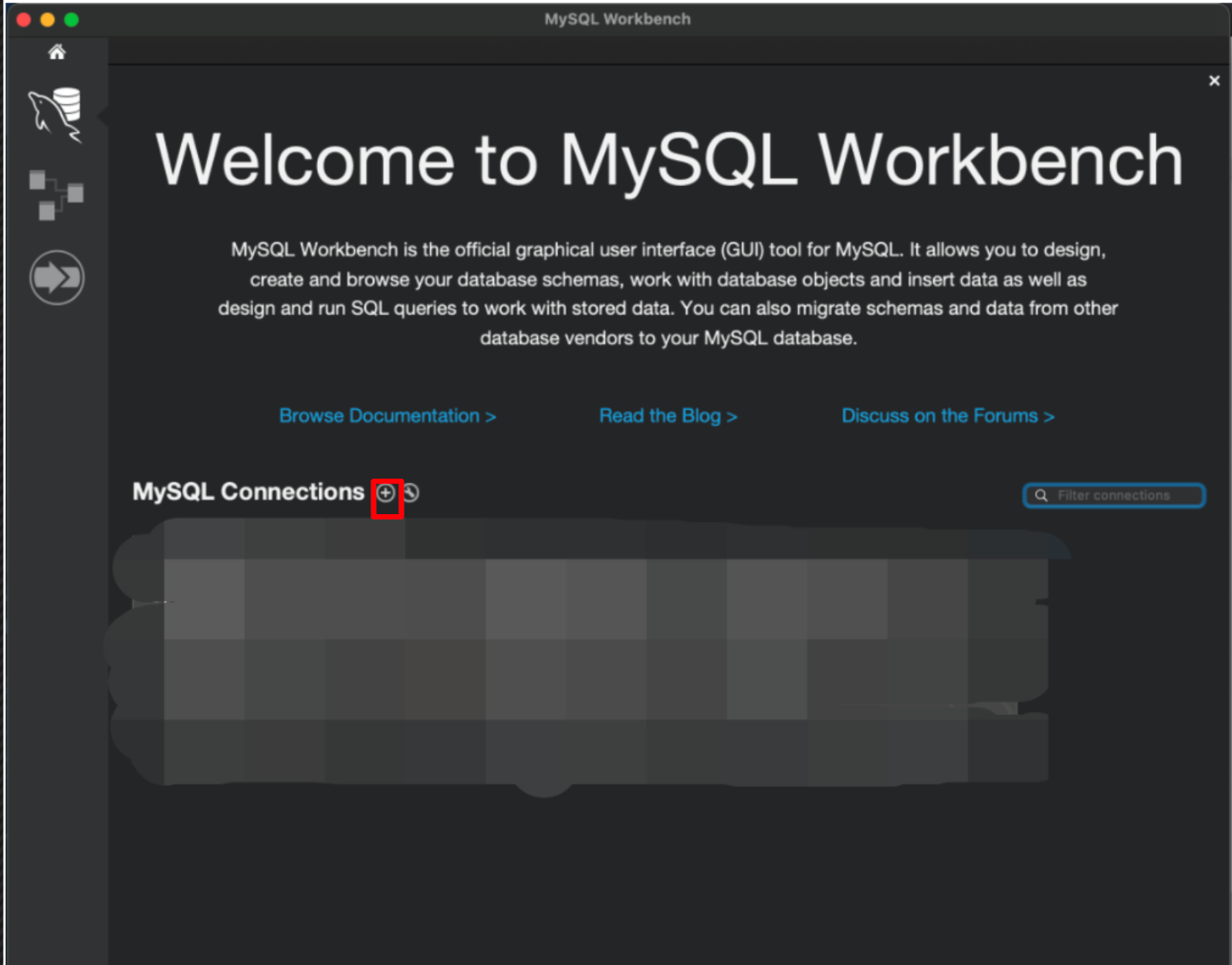 설치가 완료되면 시작화면에서 `MySQL Connections` 버튼을 클릭합니다.