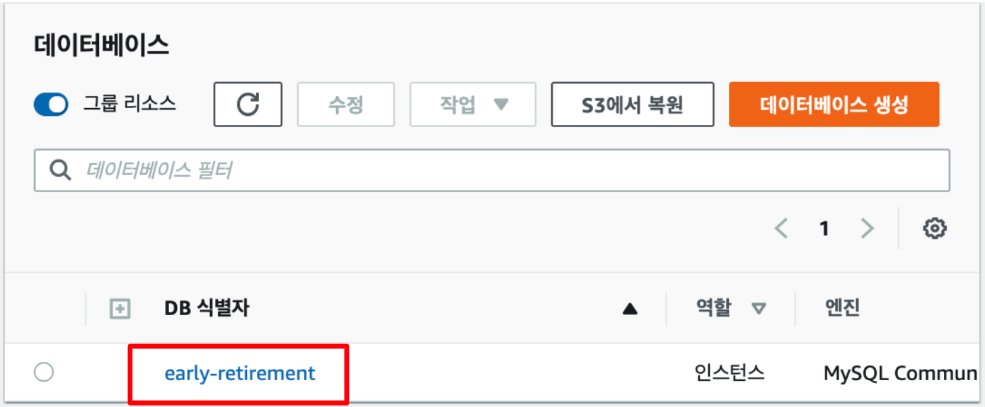 RDS 대쉬보드에서 `데이터베이스 생성` 버튼을 클릭합니다.