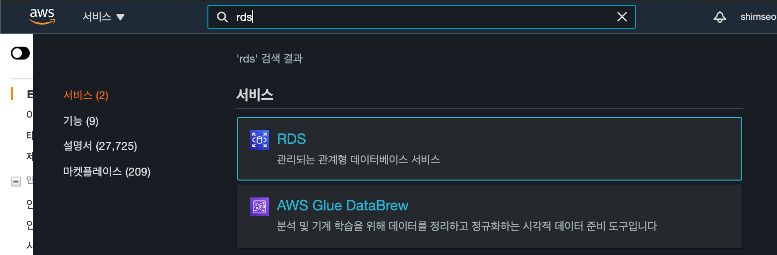 먼저 AWS 홈페이지(https://aws.amazon.com/ko/)에서 RDS를 검색합니다.