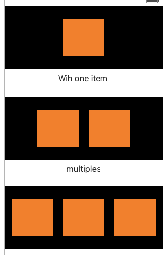 이러한 설정의 예시로 Axis를 Horizontal, Alignment를 Fill, Distribution을 Fill Equally, Spacing을 10으로 설정하여 다음과 같은 화면을 구성할 수 있습니다.