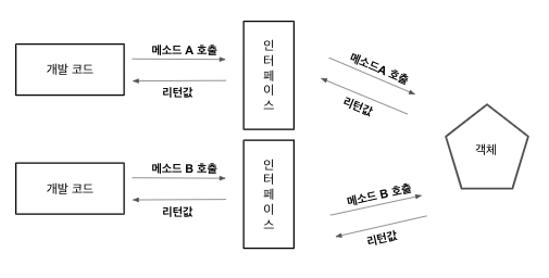 개발 코드가 직접 객체의 메소드를 호출하지 않고, 인터페이스를 이용하는 이유는?