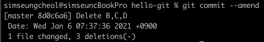 수정이 끝나고 vim을 종료하면, 커밋 메시지가 수정되면서 이전 커밋에 더해진다.