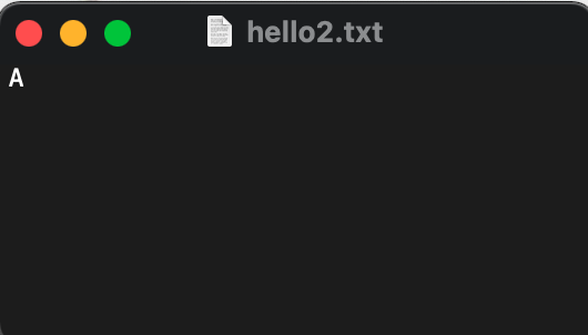 hello2.txt에 ‘A’만 남기고 나머지 내용을 삭제한다. 그리고 다시 git status 명령을 실행하자.