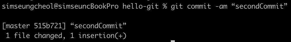 $ git commit -am “secondCommit”