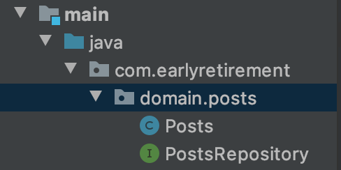 ⭐ 스프링부트 프로젝트 domain 패키지에 posts 패키지와 Posts 클래스를 만든다.