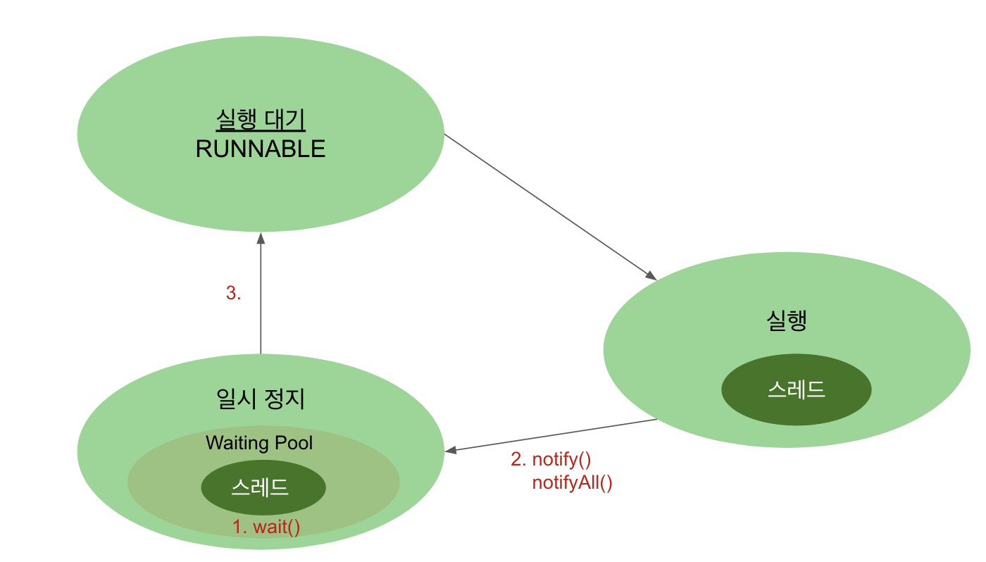 | 일시 정지 | WAITING | 다른 스레드가 통지할 때까지 기다리는 상태 |