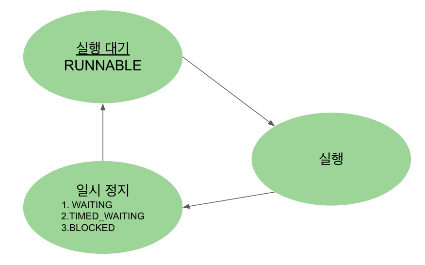 | 실행 대기 | RUNNABLE | 실행 상태로 언제든지 갈 수 있는 상태 |