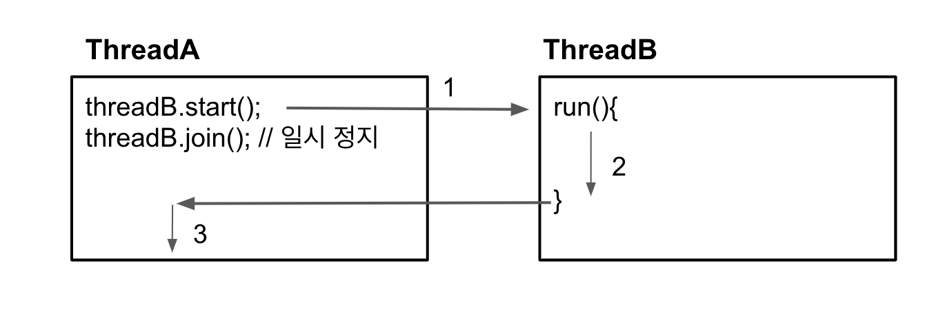join() 메소드를 호출한 스레드는 일시 정지 상태가 된다. 실행 대기 상태로 가려면 join() 메소드를 멤버로 가지는 스레드가 종료되거나, 매개값으로 주어진 시간이 지나야 한다. |