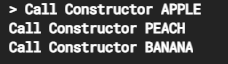 enum은 사실 클래스다. 때문에 생성자를 가질 수 있다. 아래와 같이 Fruit 타입을 초기화하여 생성자를 호출해보자.