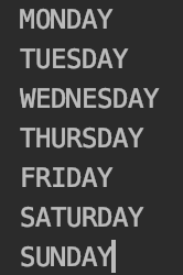 소스 파일을 생성했다면, 파일 내부에 열거 상수를 선언해보자. 열거 상수는 열거 타입의 값으로 사용되며, 관례적으로 모두 대문자로 작성한다.
