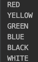 RED, YELLOW, GREEN, BLUE, BLACK, WHITE