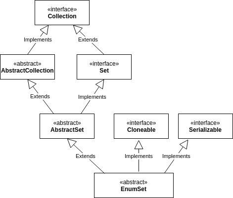 EnumSet은 enum 클래스로 작동하기 위해 특화된 Set 컬렉션(데이터를 중복 저장할 수 없고, 순서가 보장되지 않는 자료구조)이라고 할 수 있다. EnumSet은 Set 인터페이스를 구현하고, AbstractSet을 상속한다. 이러한 EnumSet의 내부는 비트 벡터로 구현되었다.
