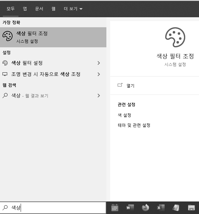 1. 검색 상자에서 '색상 필터 조정'을 검색합니다.