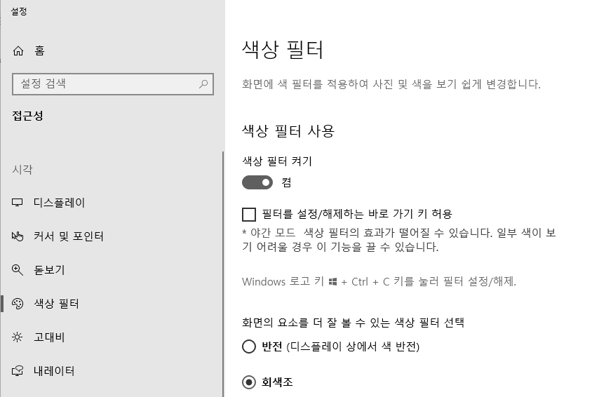 윈도우 화면 흑백으로 사용하기