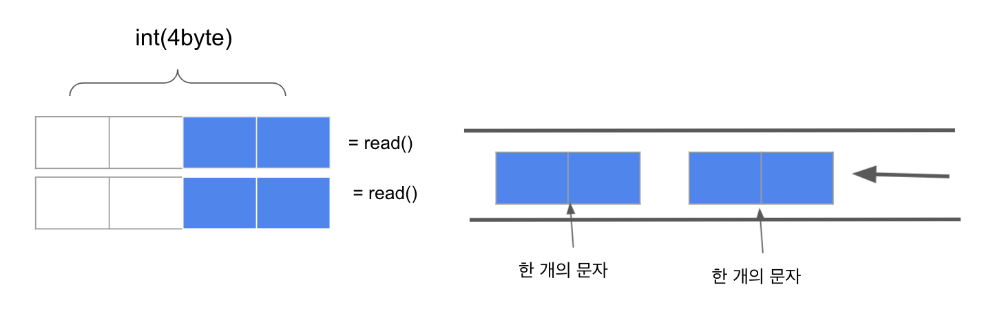 주의! int 타입이지만, 4바이트 모두를 보내는 것으로 오해하지 말자