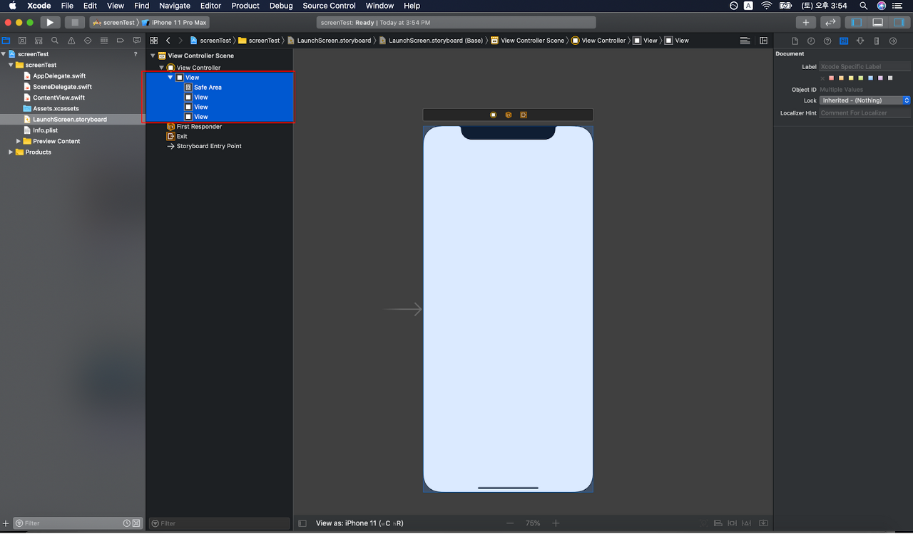 Xcode에서 IOS 프로젝트를 생성하면 프로젝트 내부에 스토리 보드가 존재합니다.
