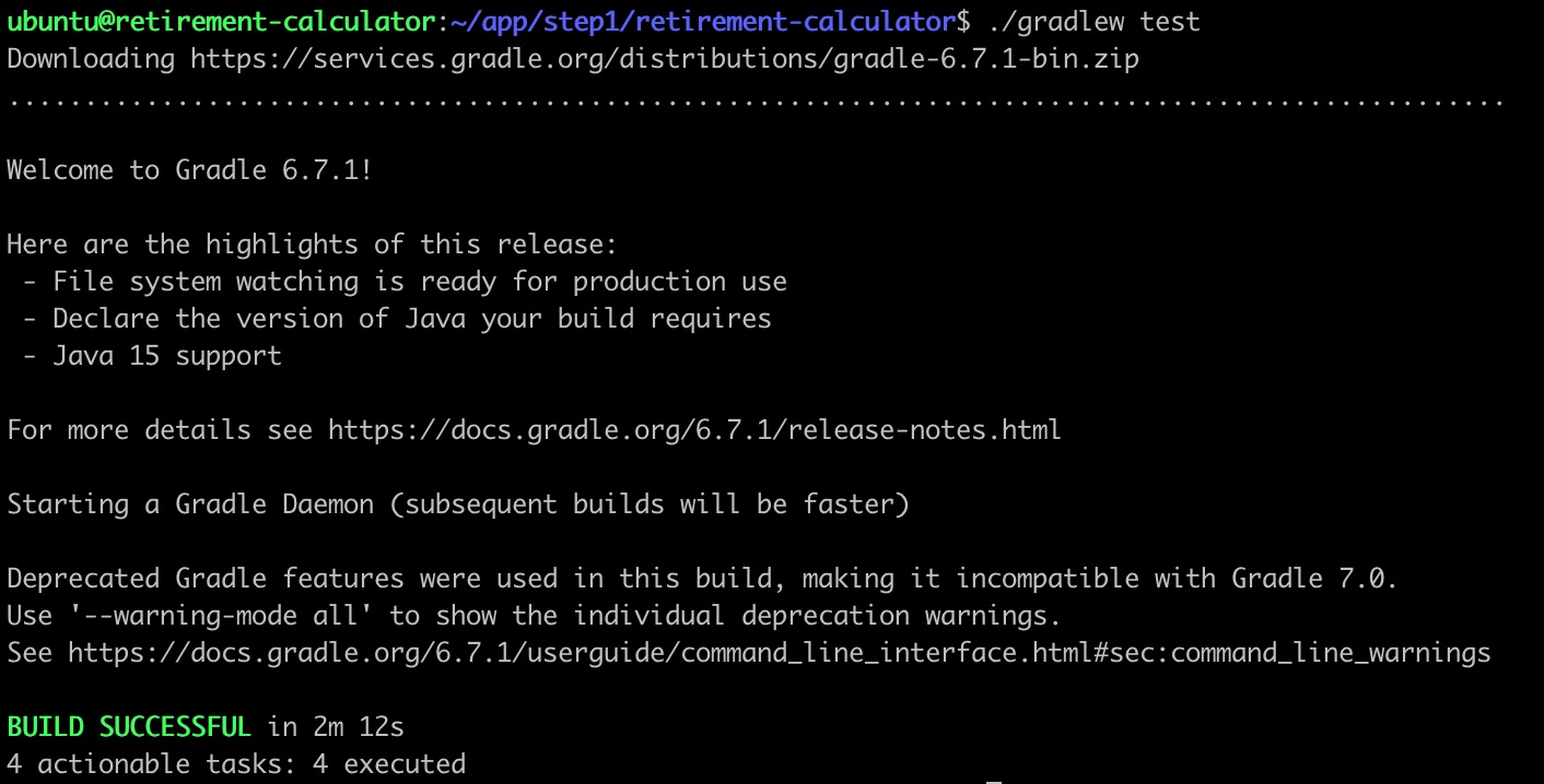 만약 gradlew 실행권한이 없다는 메시지가 뜬다면, 다음 명령어로 실행 권한을 추가한 뒤 다시 테스트를 수행하자.
