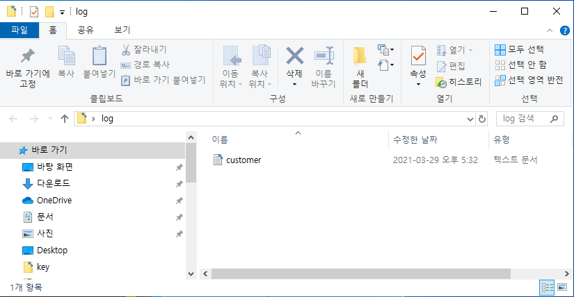스프링부트 프로젝트를 다시 실행하면, 선택한 경로에 로그 파일이 생성된다.