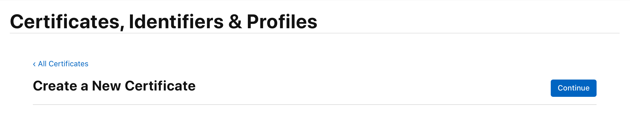Create a New Certificate 페이지로 이동하세요.