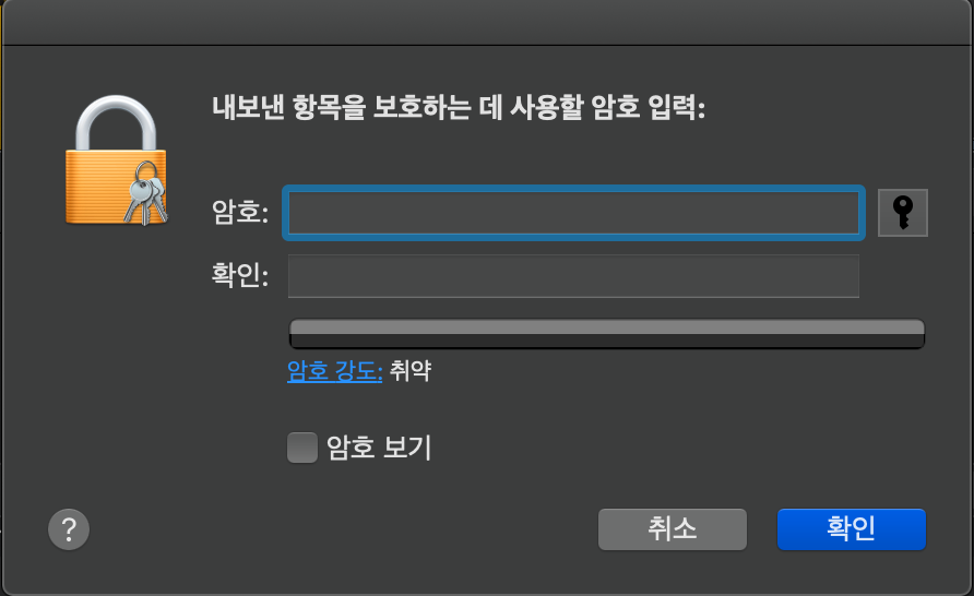 생성 중 아래와 같이 암호를 설정합니다. p12파일을 사용하기 위해서는 암호를 꼭 기억해야합니다.