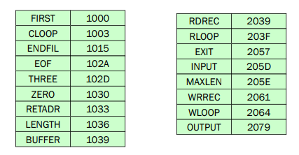 - Pass 1: LOCCTR로 부터 레이블과 그것들이 할당된 주소가 입력된다.