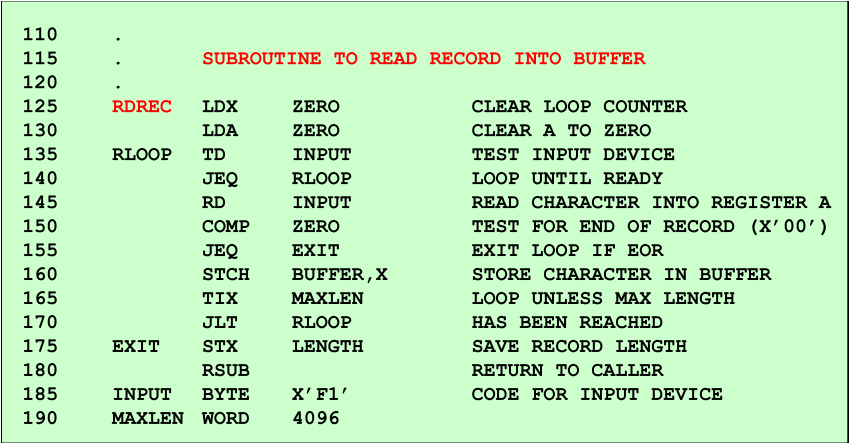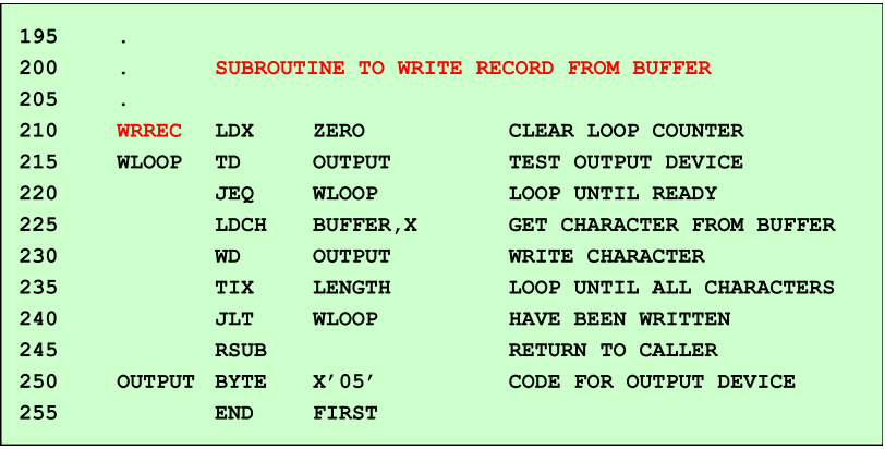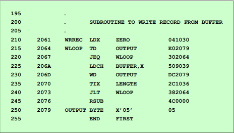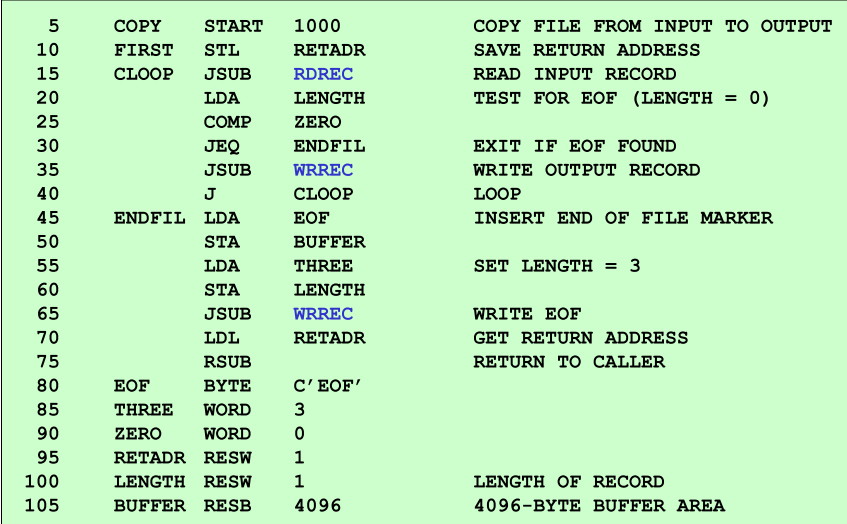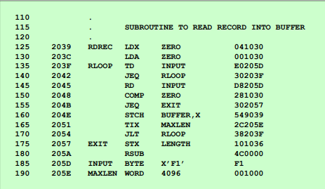 다음은 SIC 프로그램의 어셈블리 코드 예시다.