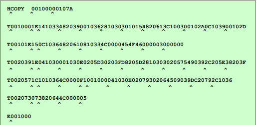 - Col. 8~9 현재 레코드에서 바이트로 표시된 오브젝트 코드 길이 (16진수)