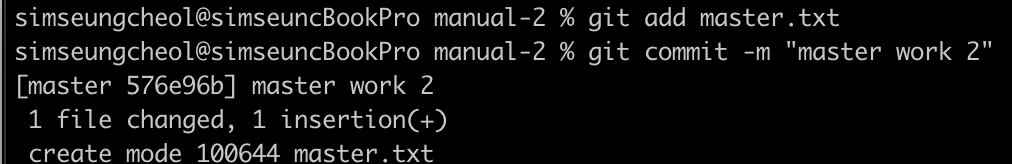 $ git commit -am "master work 2"