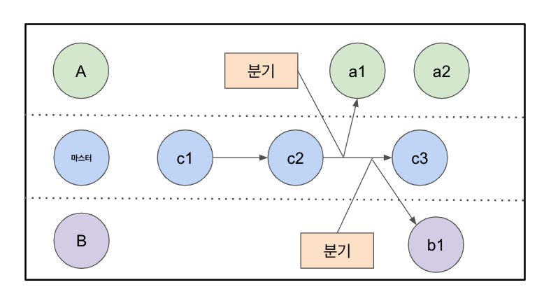 이렇게 master 브랜치에서 뻗어 나오는 새 브랜치를 만드는 것을 분기(branch)라고 한다.