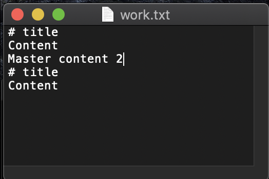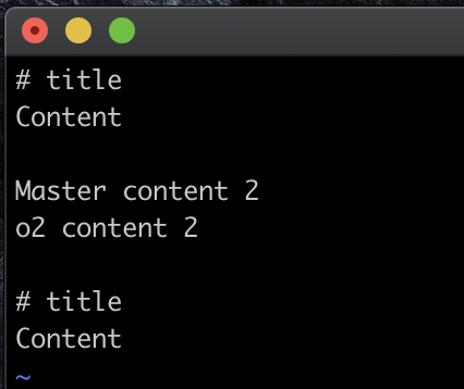 ▶ work.txt 파일을 확인해보면, master 브랜치의 수정 내용과 o2 브랜치의 수정 내용이 자연스럽게 하나의 파일에 합쳐진 것을 볼 수 있다.