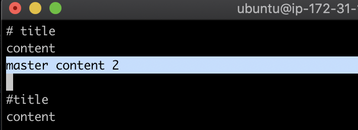 이렇게 하면 apple 브랜치에는 없고 master 브랜치에만 있는 커밋(‘master content 4’)을 보여준다.