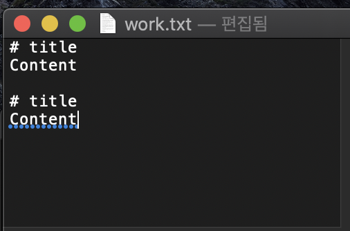 ▶ work.txt 파일을 만들고, 중간에 두 줄 공백이 있게 다음과 같이 작성한다.