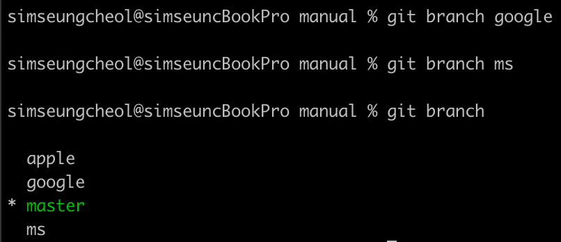이제 부터 apple, google, ms라는 고객사가 있다고 가정하고, 브랜치를 통해 여러 고객사에게 서로 다른 내용의 사용 설명서를 제공하는 작업을 하자.
