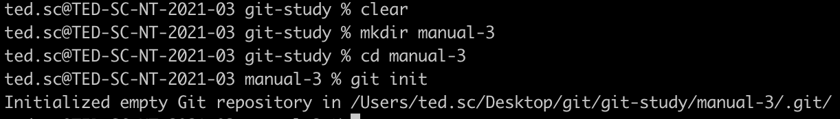 ✍터미널에서 manual-2라는 디렉터리를 만든 후 저장소를 초기화 한다.