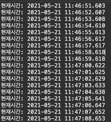 다음과 같이 fixedDelay 옵션을 fixedRate로 변경하고, 코드를 실행해보자.