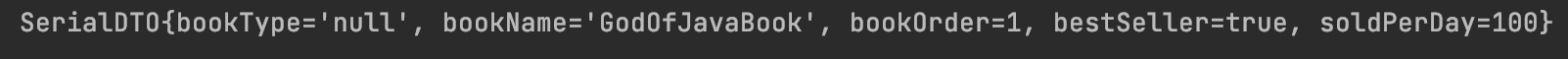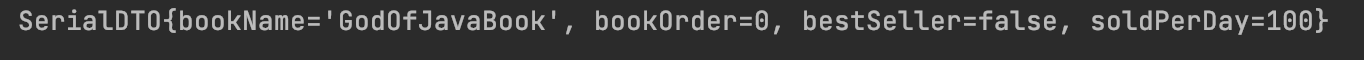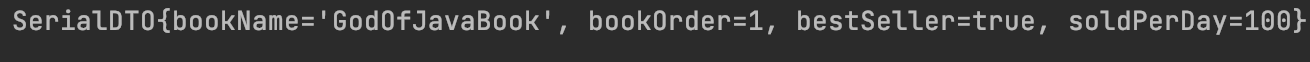 SerialDTO dto = new SerialDTO("GodOfJavaBook", 1, true, 100);