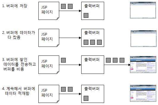 출력 버퍼에 임시로 응답 결과를 저장했다가 한 번에 웹 브라우저에 전송함