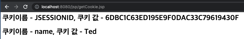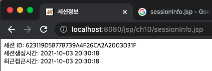 - 웹 어플리케이션의 컨텍스트 경로가 /ch10이면, 세션을 위한 JSESSIONID 쿠키의 경로도 ch10이고,