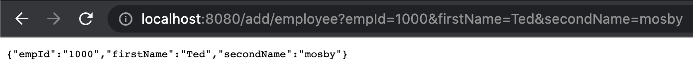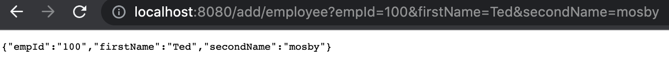 ex) http://localhost:8080/add/employee?empId=100&firstName=Ted&secondName=mosby