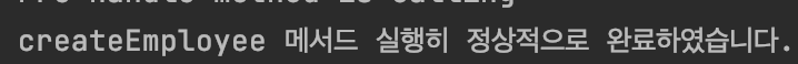 요청을 하면 위의 이미지 처럼 createEmployee 메서드가 정상적으로 종료되어, 콘솔에 메세지가 출력되는 것을 볼 수 있다.