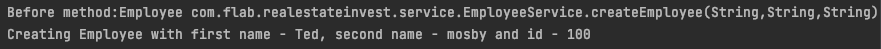 @Before(value = "execution(* com.flab.realestateinvest.service.EmployeeService.*(..)) and args(empId, fname, sname)")