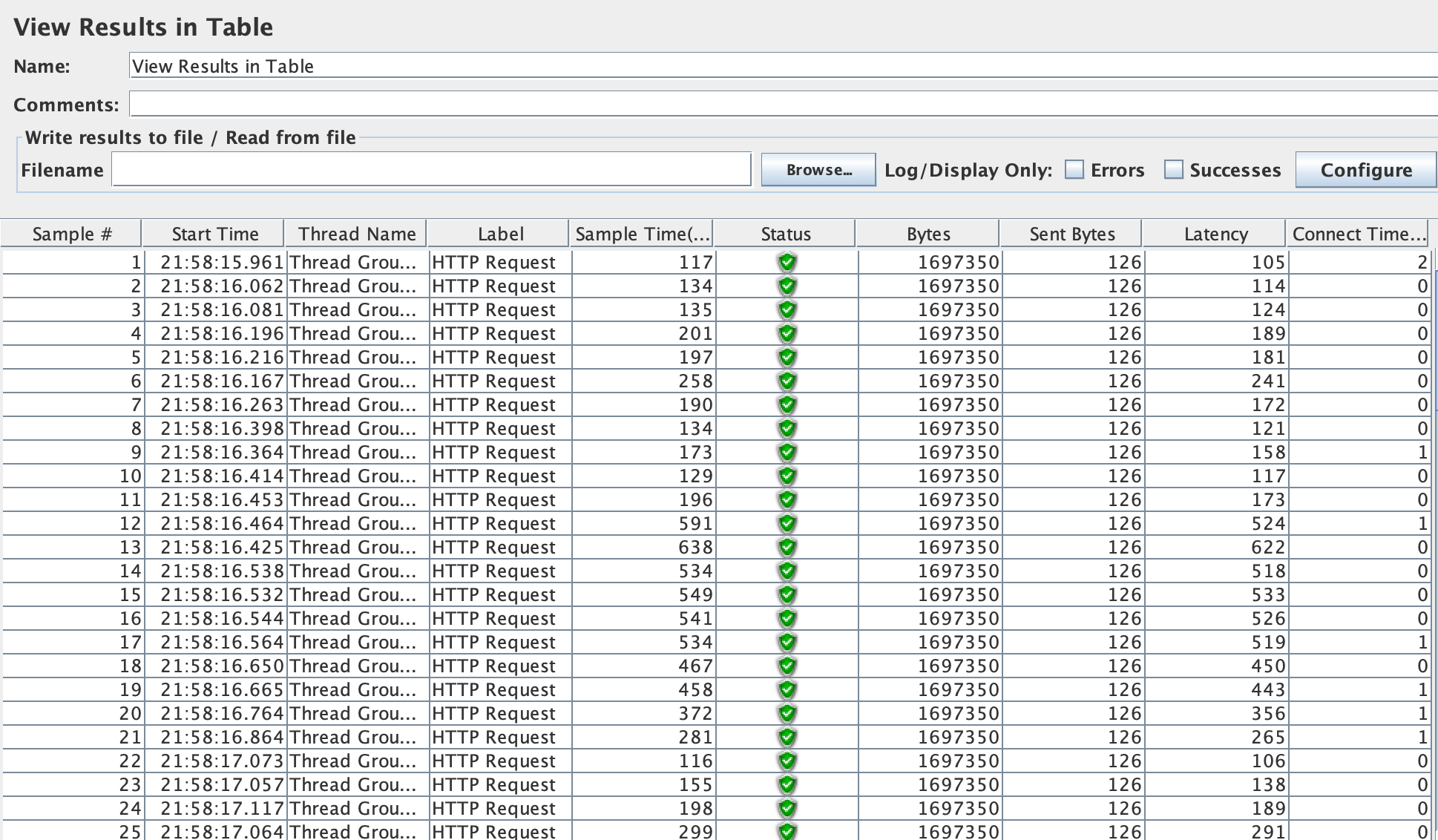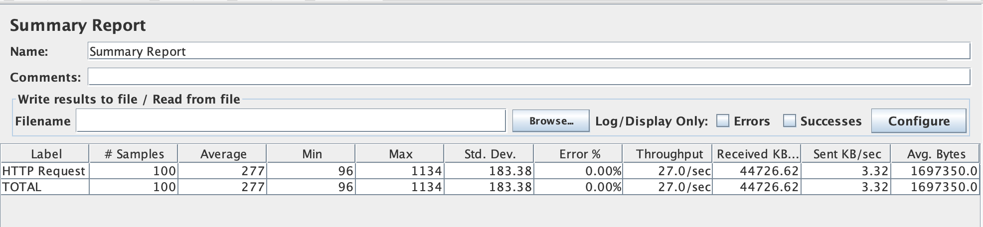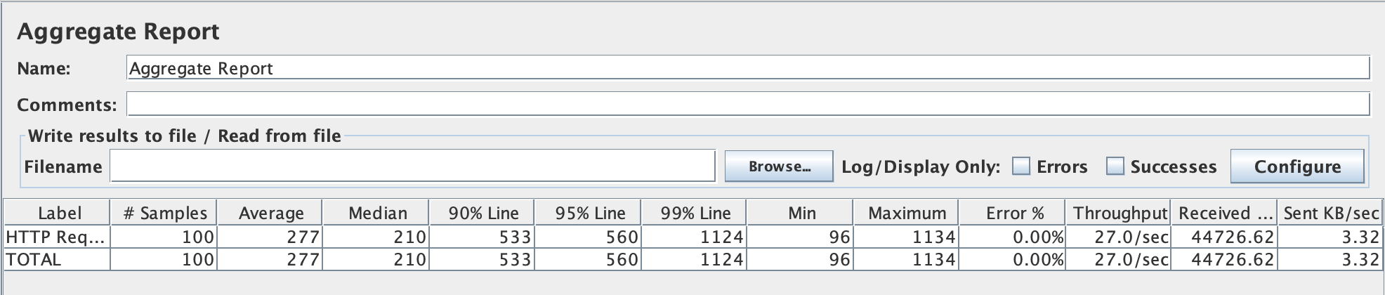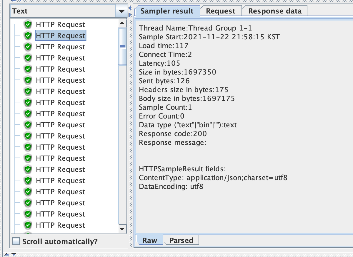 상단의 플레이 버튼(초록색 버튼)을 누르면, 요청이 시작되고 Listener들은 응답에 대한 리포트를 만든다.