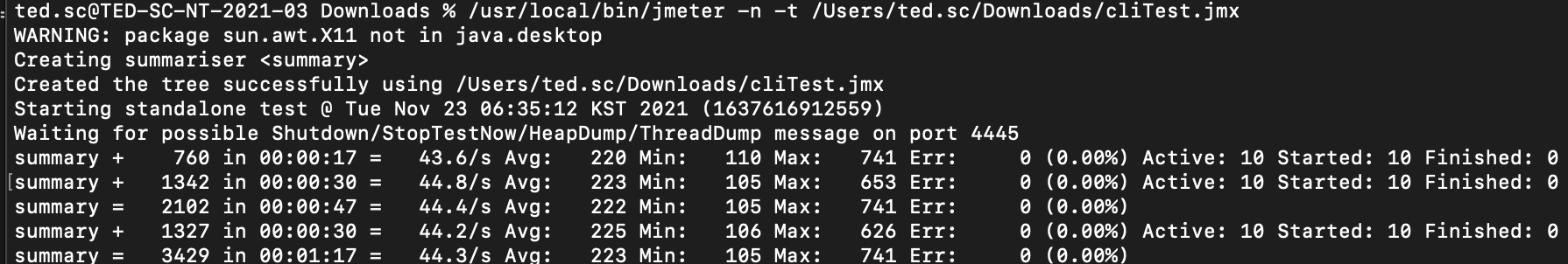 jmeter경로/jmeter -n -t 테스트파일경로/cliTest.jmx
